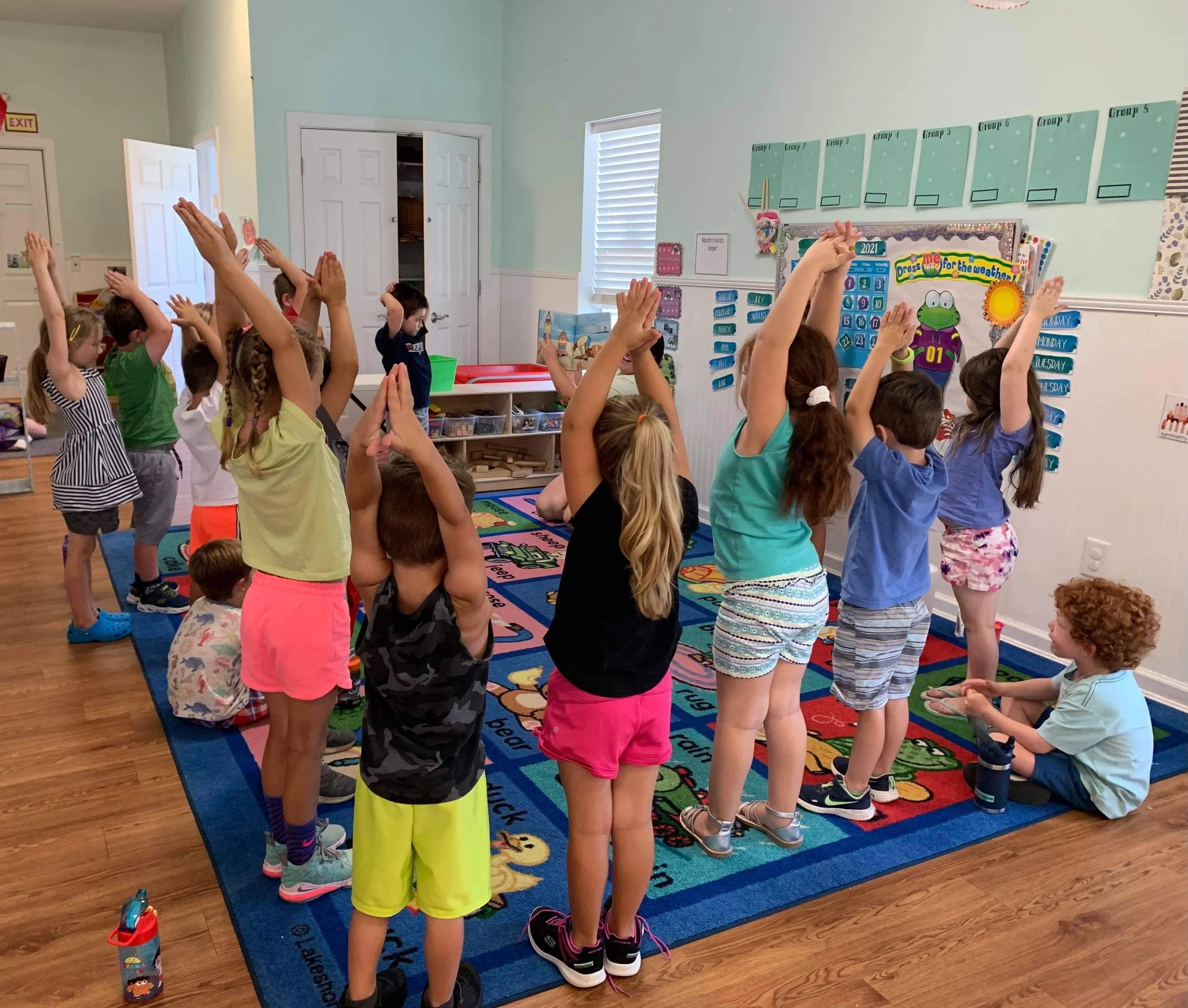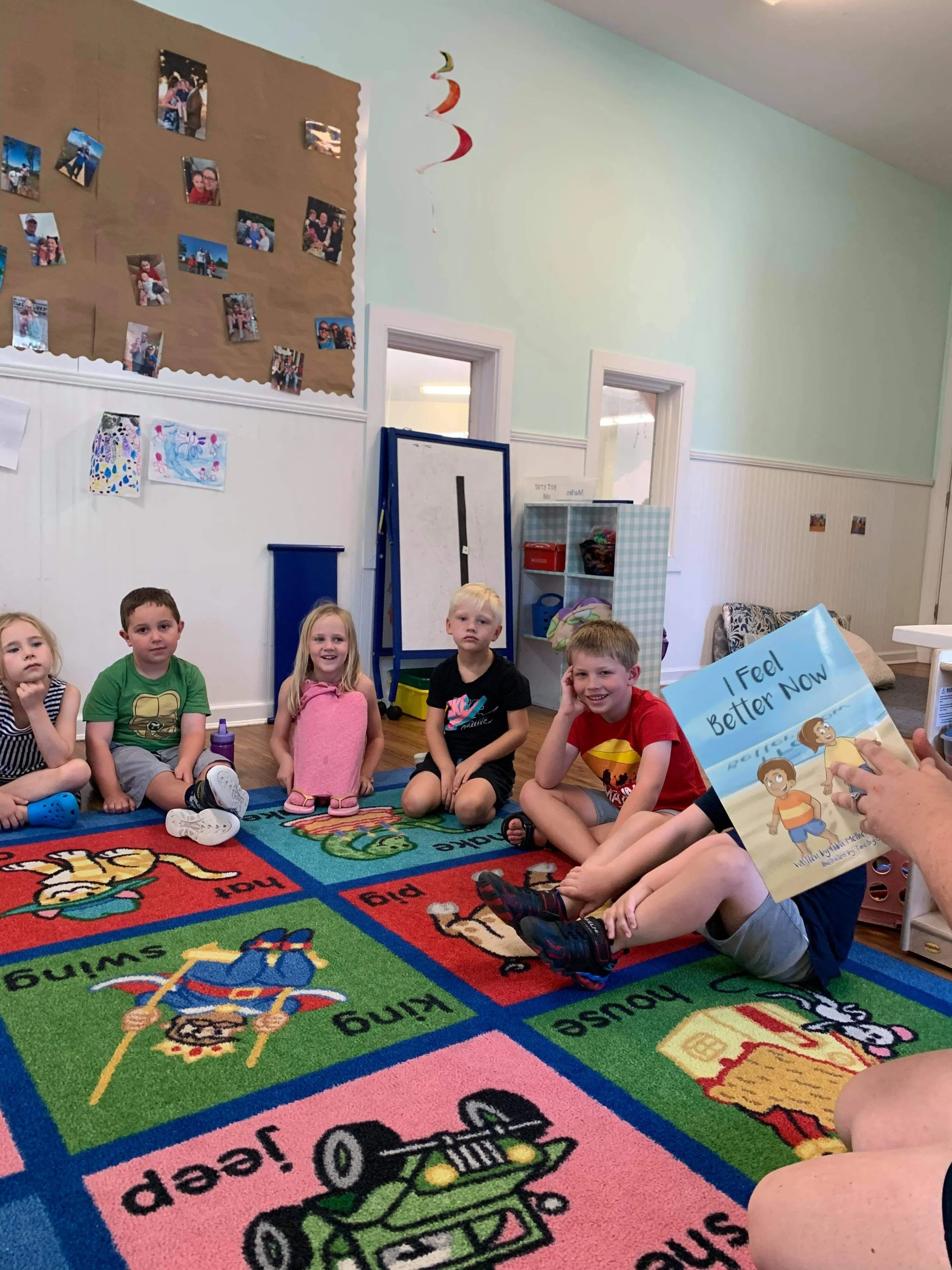 Kids Cottage Preschool, Daycare and Learning Center, Rehoboth, Delaware. Ms. Kelli's class, The Marlins (4 to 5-year-olds), practicing techniques from I Feel Better Now - July 2021. © Photos courtesy of Lori Schell.