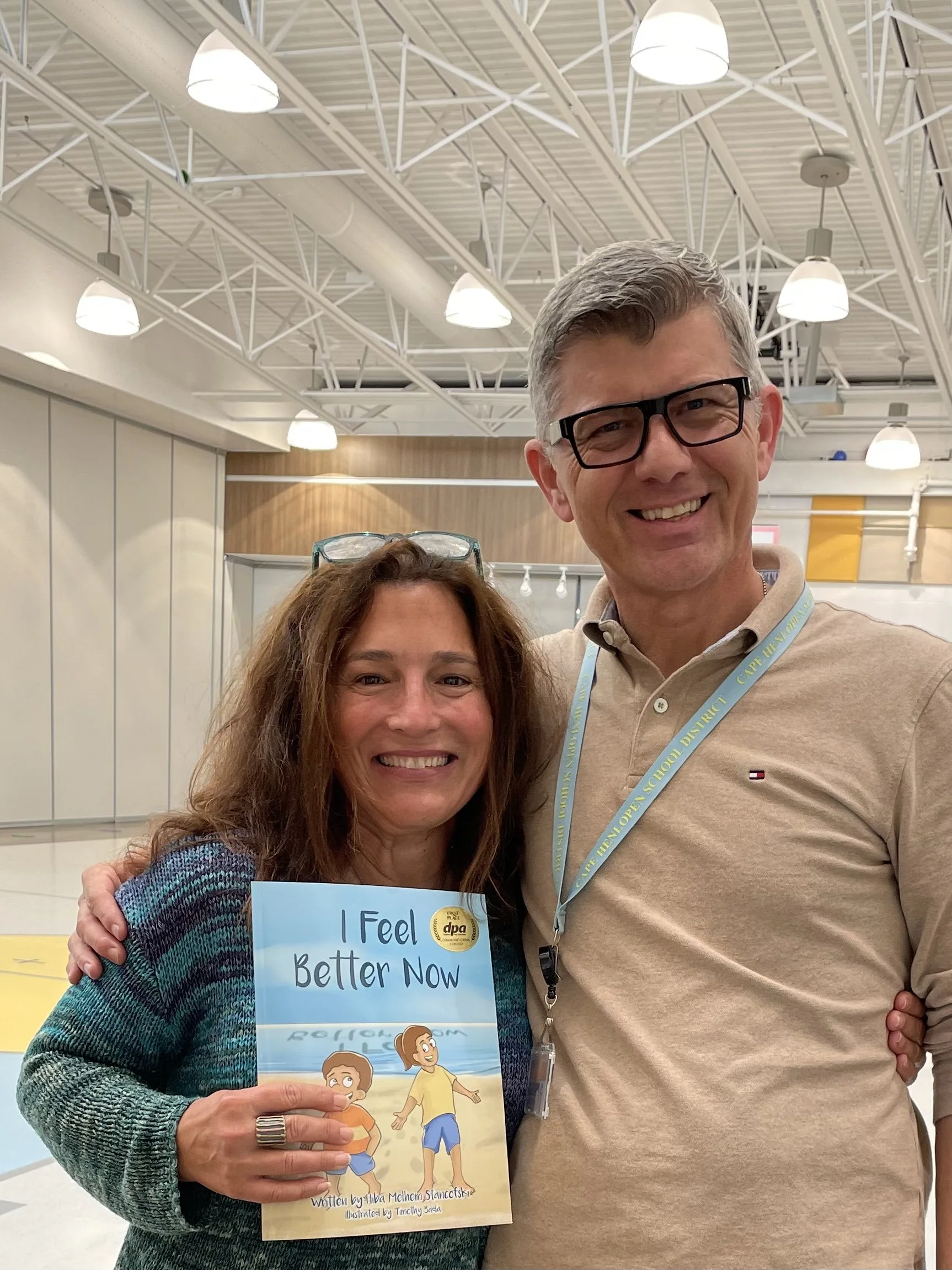 Love Creek Elementary School visit in Lewes, Delaware, on November 1, 2022. Hiba read her book | Feel Better Now and practiced yoga and mindfulness with Fourth and Fifth graders. Pictured with Hiba is school social worker Mr. Michael Shanefelter.